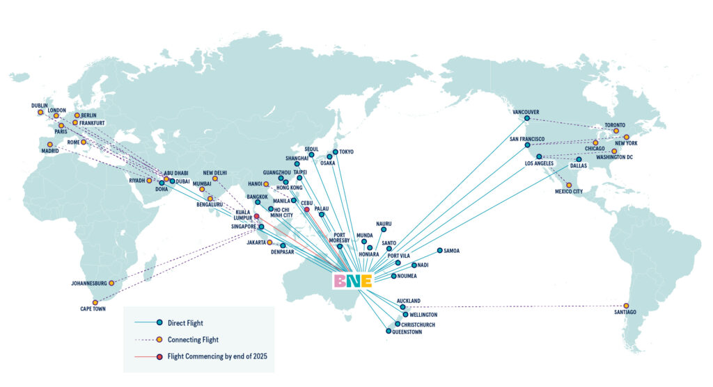 Direct and Connecting Routes to Brisbane